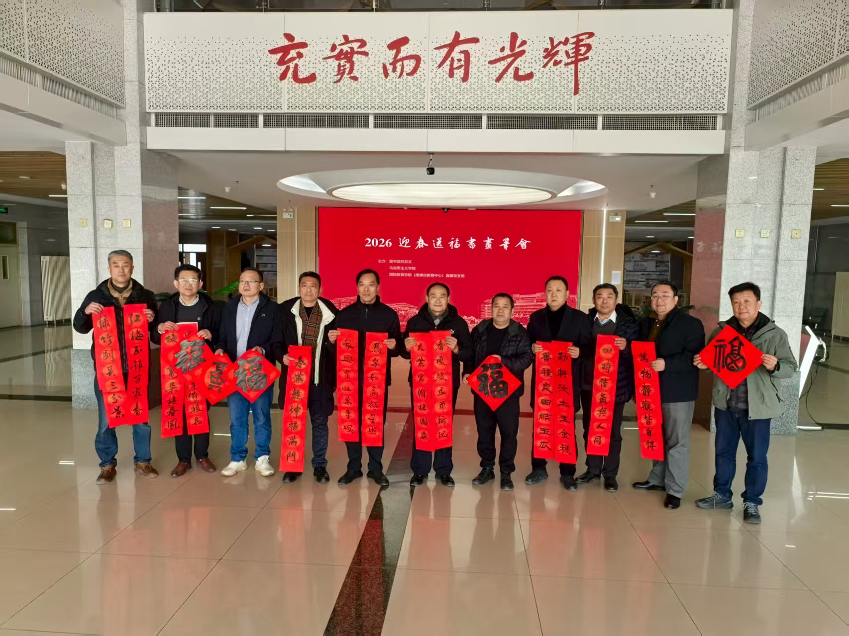 (港澳台教育中心)直属党支部联合主办的2026新春送福笔会在图书馆金石书画中心成功举办。