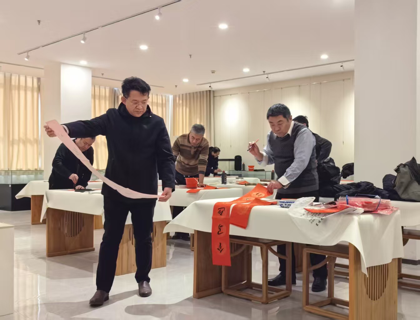 笔会邀请了著名书画家、艺术家、作家韦良成、苏斌、刘文华、杨金勇、安群、张连杰等参加,与我校中医与书法课程教师一起创作春联、福字百余件,赠送给仍在校园里工作学习的师生。