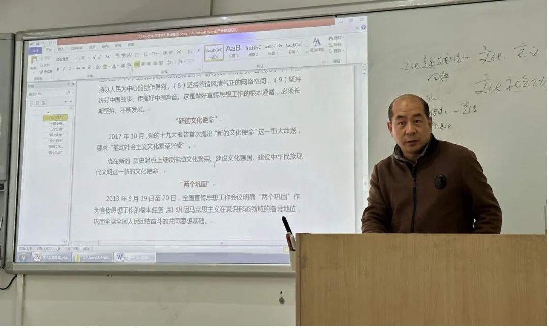 李传实老师以深入学习领会习近平文化思想为主题,围绕习近平文化思想的“七个着力”和“十四个强调”等内容,详细地阐释了文化的内容、社会功能以及文化建设所遇到的问题等,引发了同学们的广泛思考和讨论。在讨论交流中,同学们踊跃发表自己的见解、分享自己的学习心得,大家对习近平文化思想的内容有了更深刻的认识。李老师同时勉励同学们在研究中要注意研究方法,培养创新思维、批判性思维和独立思考的能力,注重深度思维的运用。