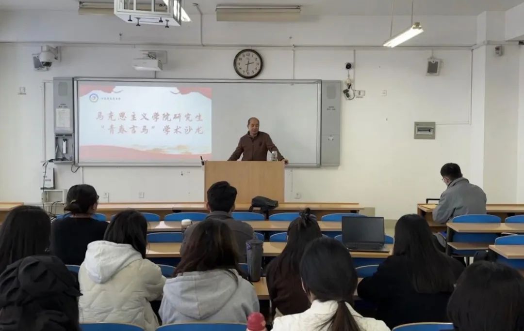 首期研究生“青春言马”学术沙龙在二号教学楼113举行,本次学术沙龙以“深入学习领会习近平文化思想”为主题,邀请硕士研究生导师、李传实副教授担任领学人。