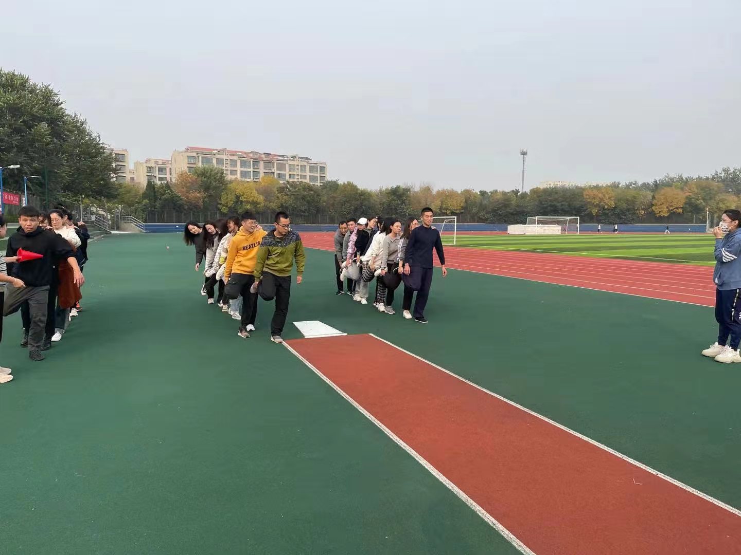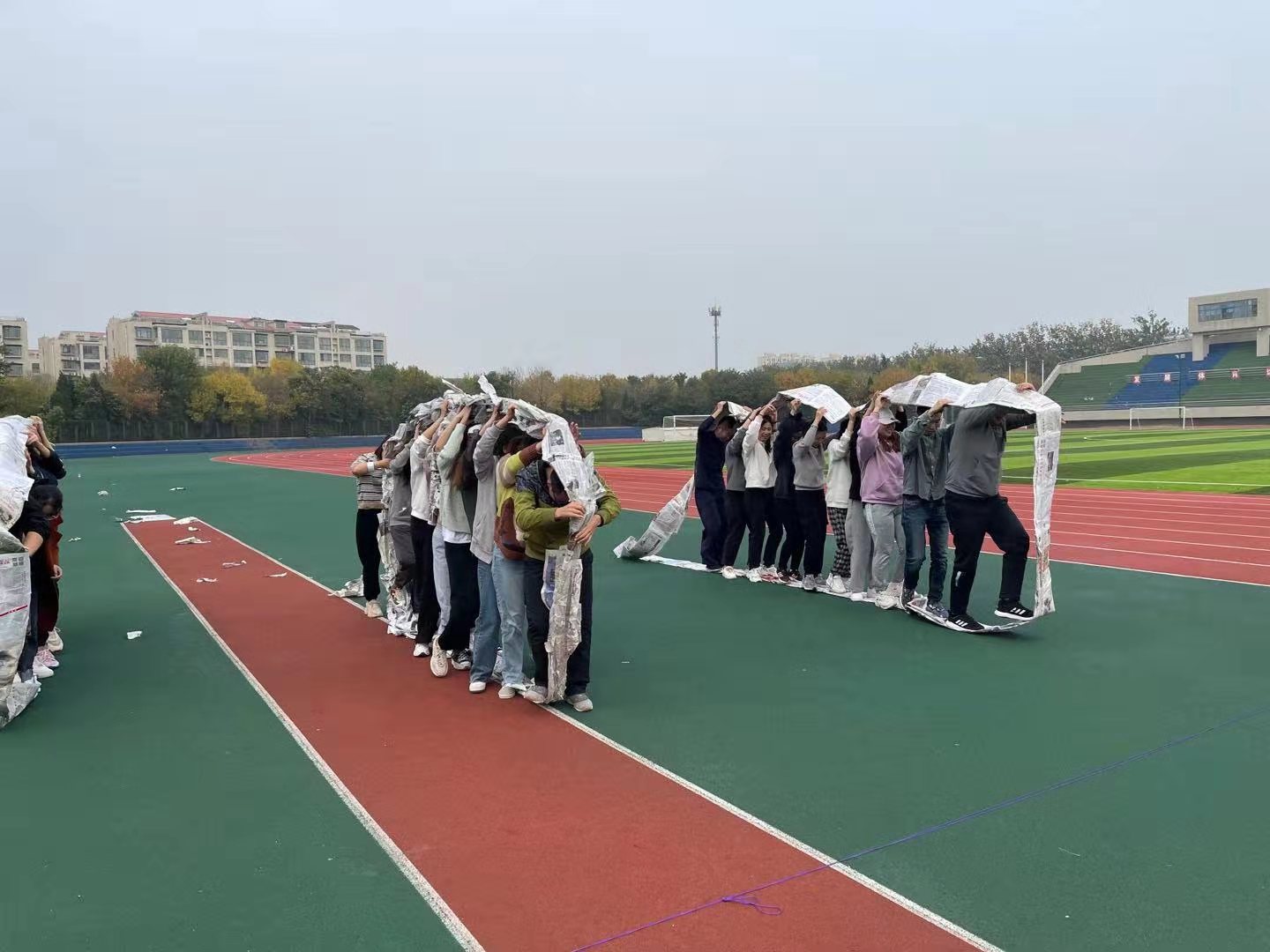 本次素质拓展活动以班级为单位,三个年级分成三组,开展了十人九足、解手链、协作跳、报纸坦克四个生动有趣的活动训练项目。活动期间,各班级团队成员激情参与,在不同的活动项目中,队员们密切配合,齐心合力,加深了彼此的了解和信任。