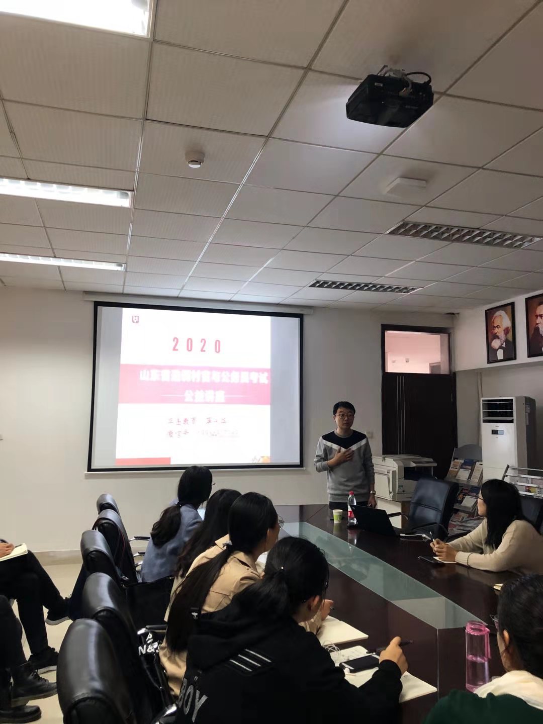 蒋永华老师是公务员考试方面的专家。讲座中,他总体介绍了公务员考试分类与时间安排,讲解了公务员考试的主要内容,重点提醒学生关注形势、了解政策,用宽广的眼界和日常的积累应考;具体介绍了行政能力测试题的解题技巧,涵盖了数字分析、判断推理、常识判断等方面;深入地讲解了申论写作的要求与技巧,以及注意事项。同时,他以公务员考试真题为例,结合材料和问题进行答题指导,就如何做出合理性论断、如何结合材料多角度分析问题,如何运用材料内容做好题、得高分等技巧都做了具体的示范。讲座内容丰富,语言生动,使同学们受益匪浅,受到一致好评。