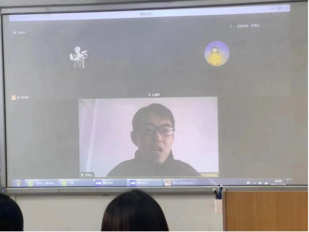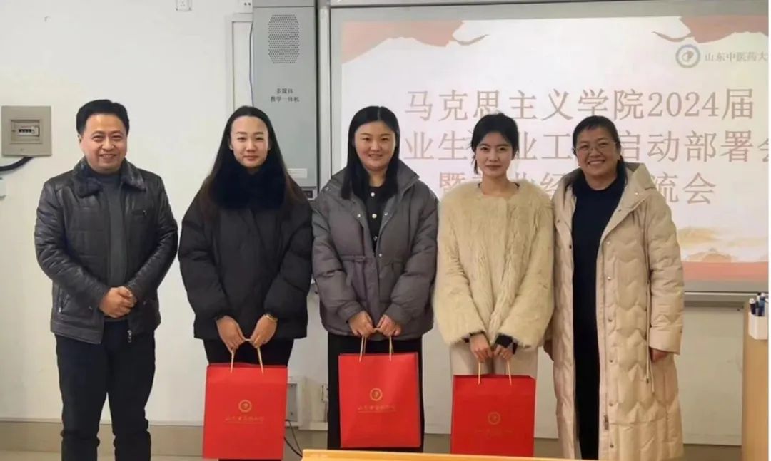 )、赵星舒(就职于济南市投资促进中心)等5位高质量就业校友通过线上与线下结合的方式进行就业经验交流。陈众、郭鹏为线下参加活动的校友颁发校友纪念品。