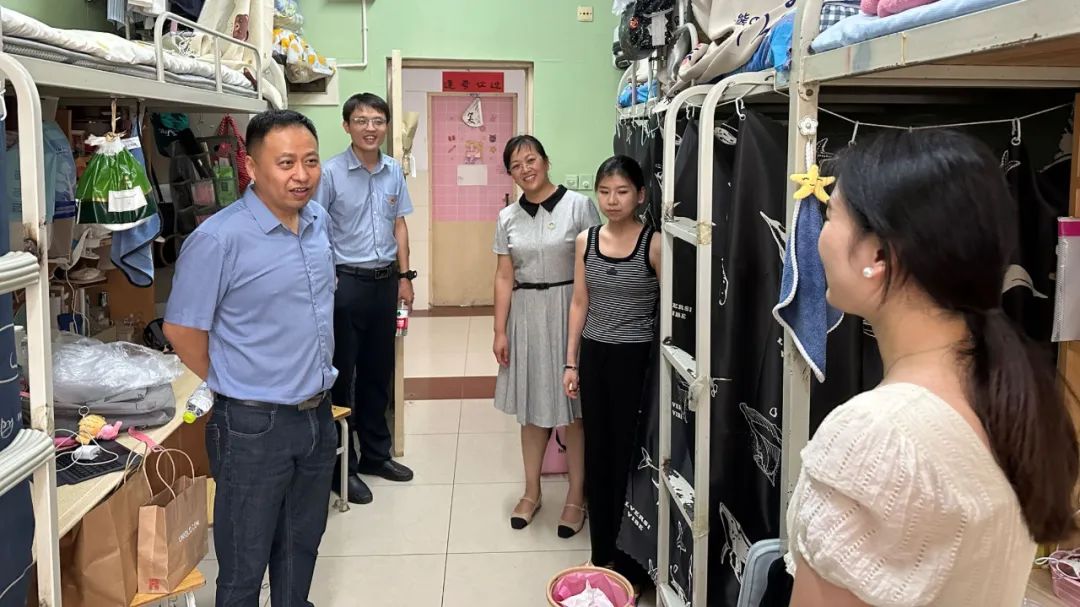 党委书记陈众、党委副书记郭鹏在迎新现场指导工作,并走访慰问了新生宿舍。