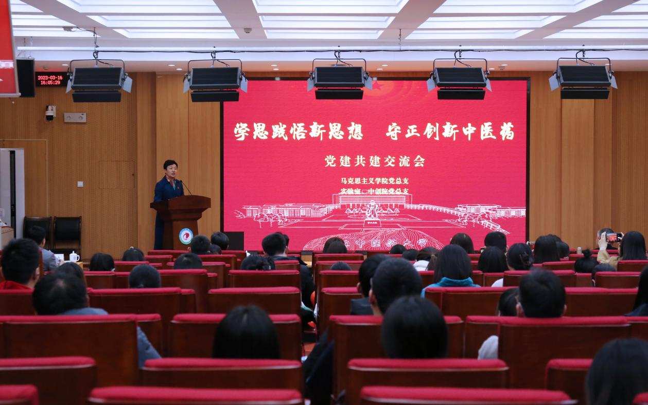 党总支和实验室、中创院党总支联合主办的“学思践悟新思想,守正创新中医药”党建共建交流会在三号教学楼第二报告厅举行,校党委副书记田立新出席会议并讲话。