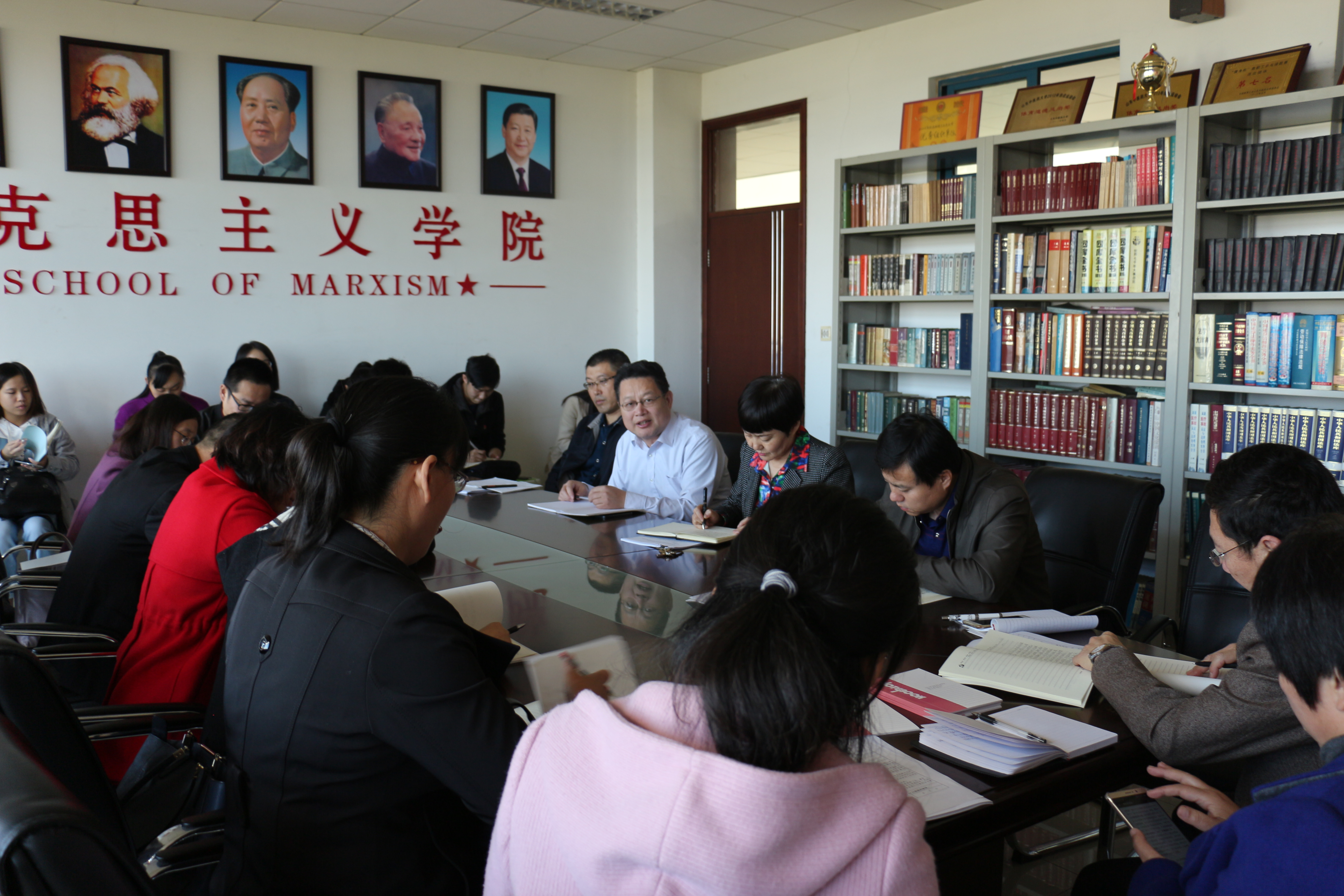 副院长马晓亮,十九大报告中提到了过去五年我们党带领人民在各方面取得了伟大成就,这是以习近平同志为核心的党中央的坚强领导的结果,正是因为我们党有了创新性的理论,才筑起了坚强的政治勇气和强烈地责任担当。理论创新体现在党的创造力,即与时俱进,因时而变,因事而变;党的凝聚力,体现全国各族人民在中国共产党的领导下,齐心协力,共同实现中国梦;党的战斗力,体现为党的组织力量,能够抵御一切有害于中国社会主义建设和西方价值观。我们作为思政课教师,应当清醒地意识到自己面临的任务是深入研究新时代中国特色社会主义理论,我们也身逢其时,竭尽全力将本职工作做好,充分发挥我们思政课在育人中的作用。
