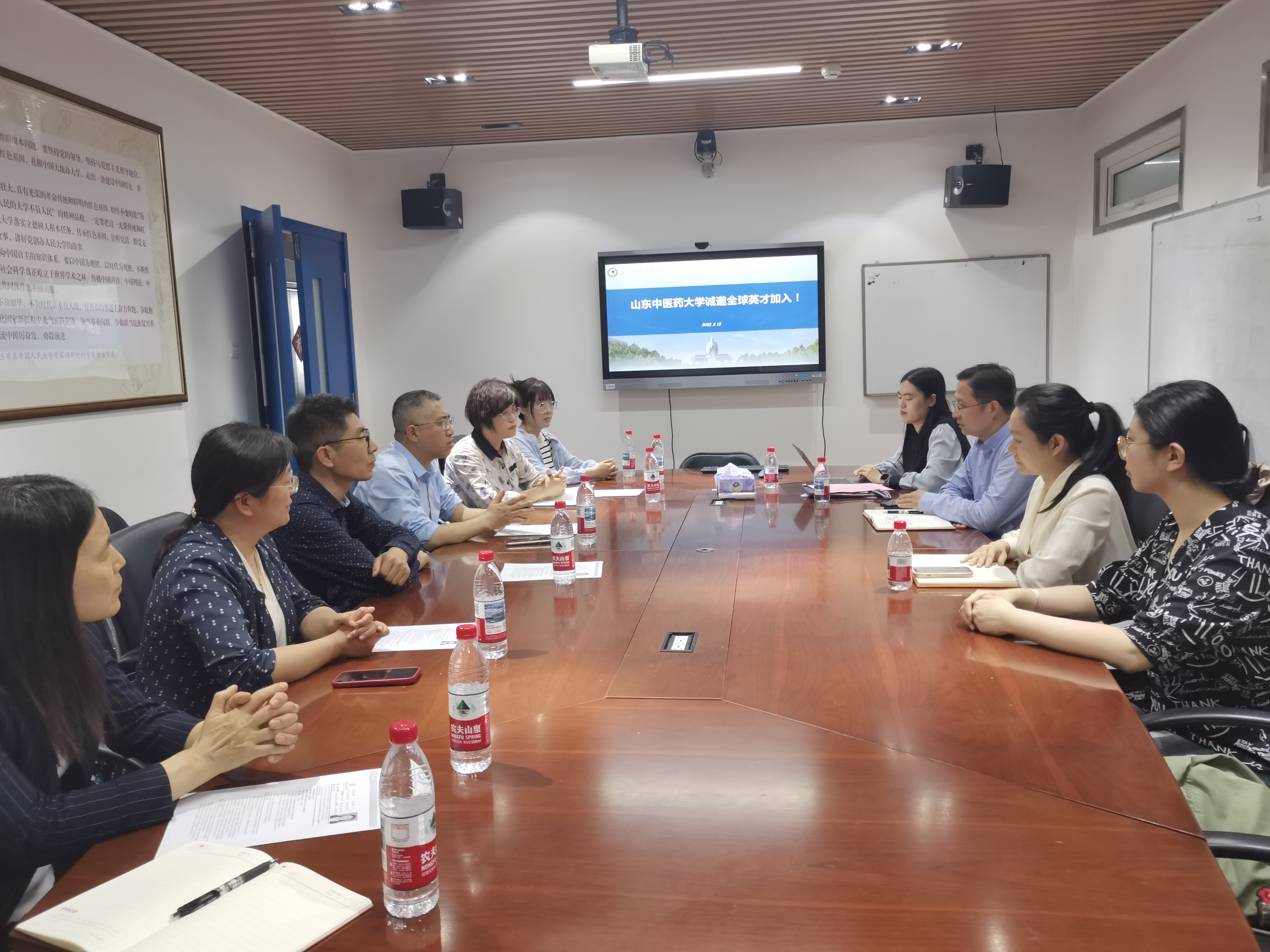 座谈会第二阶段,人事处刘江亭副处长、郭鹏院长向调研高校的应届博士毕业生作招聘宣讲,介绍了学校近年来的发展状况和人才政策,会场交流氛围热烈。